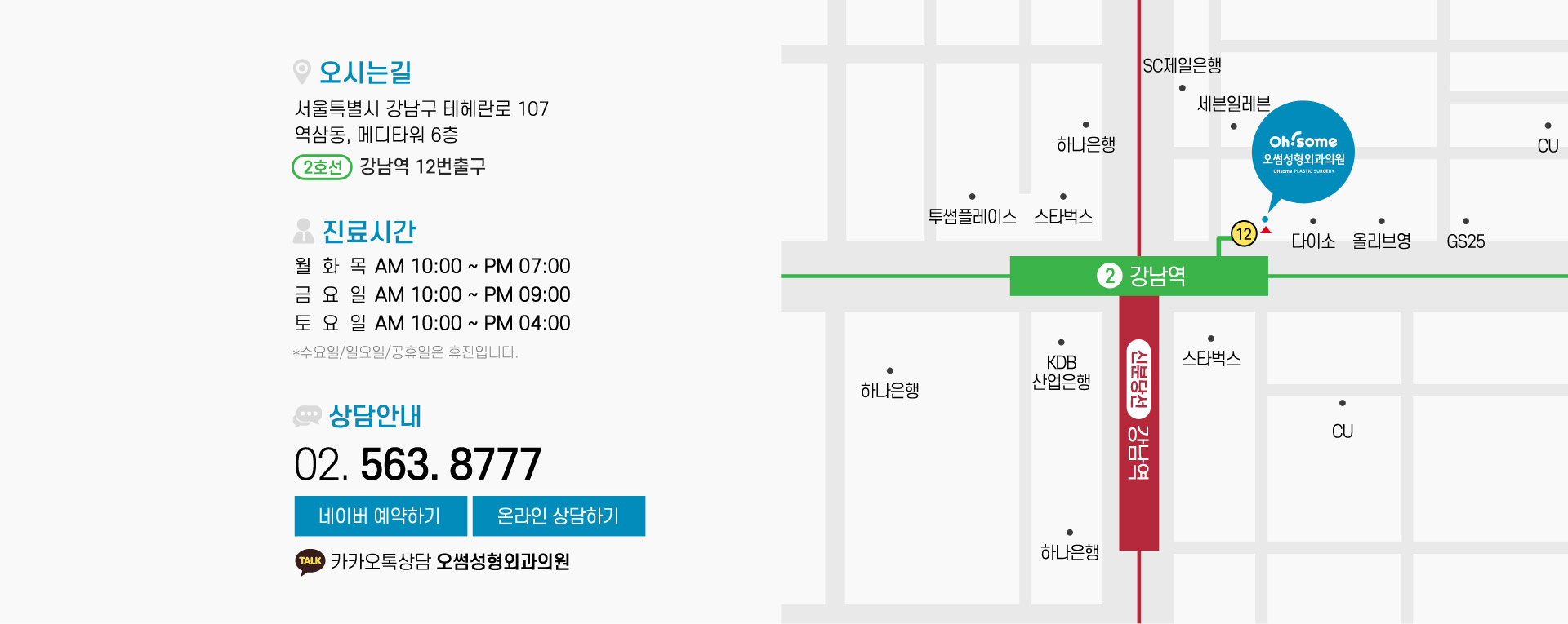 | 35 | 오썸성형외과 오시는길 공지사항: 강남역 12번 출구 임시폐쇄 안내 | OHSOMEPS | 2024.06.21 |